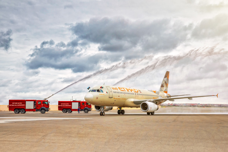 Авиакомпания Etihad Airways запустила первый в истории регулярный рейс, связывающий Абу-Даби и Баку. Самолет инаугурационного рейса EY297 вылетел вчера из Абу-Даби и доставил в Баку специальную делегацию пассажиров, в число которых вошли дипломаты, почетные гости, представители средств массовой информации и руководства Etihad Airways. По прибытии в Баку самолет встретили торжественным салютом с водяной аркой, на что экипаж ответил традиционным приветствием флажками ОАЭ и Азербайджана из кабины.