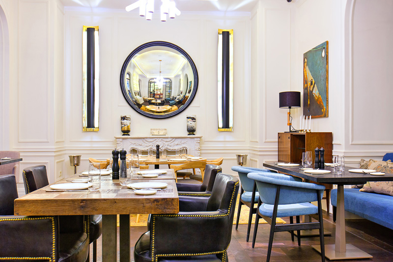 Интерьер выполнен в светлой цветовой гамме, грамотно расставленные акценты создают впечатление уюта и простора. Пространство открытое, но в то же время камерное, благодаря правильному зонированию. Минимализм в интерьере призван служить основной цели: не отвлекать посетителей обилием деталей от основного- невероятной авторской кухни.