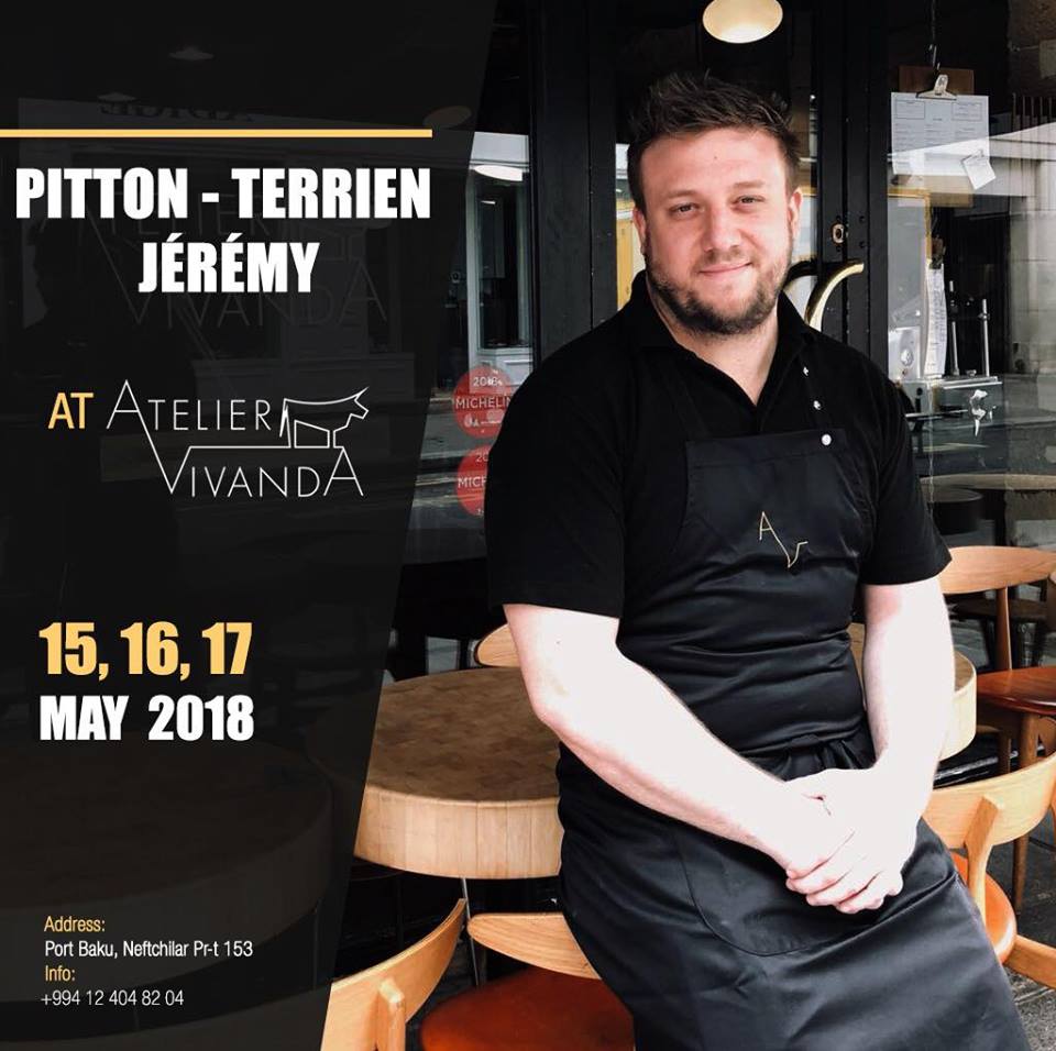 Дорогие друзья, спешим поделиться интересной новостью! Главный шеф-повар ресторана Atelier Vivanda, обладатель 2-х звёзд «Мишлен» и главный помощник Акрама Беннали - Pitton-Terrien Jérémy, будет в Баку с 15 по 17 мая! Он будет радовать вас вкуснейшими блюдами. С нетерпением ждём вас!