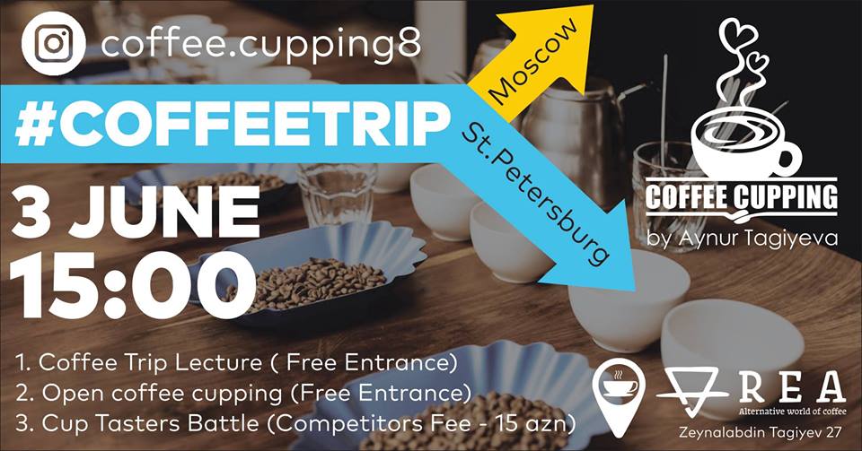 3 июня, первый кофейный блог Айнур Тагиевой– «Coffee cupping by Aynur Tagiyeva», при поддержке The Lab / Coffee Hub приглашает Вас посетить обзор путешествия по кофейной культуре Москвы и Санкт-Петербурга, который пройдет в кофейне "Rea Coffee" по адресу Зейналабдин Тагиев 27.